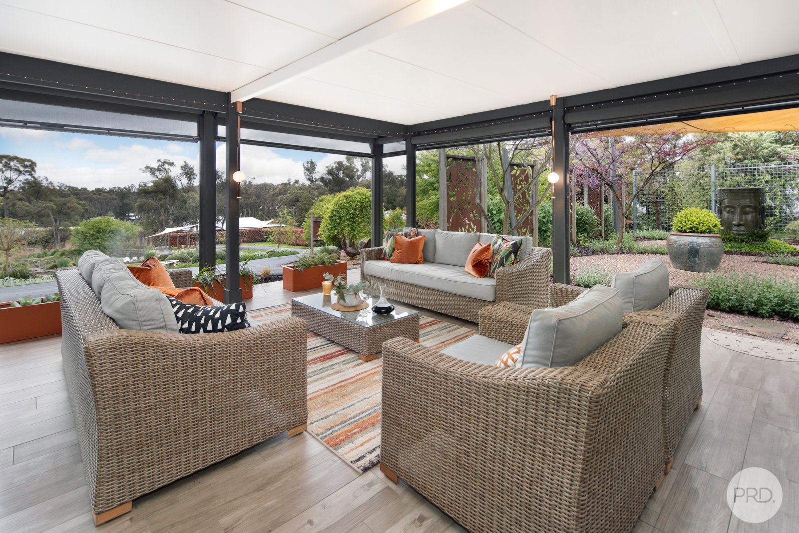 • Twelve distinctive garden zones, thoughtfully designed by renowned landscape designer Scape Artist, are supported by a concealed rainwater tank and automated irrigation for sustainable year-round greenery. These exceptional gardens were showcased at the Victorian Garden Design Festival and are featured in this year's Creswick's Garden Lovers Weekend (8-9 November). A unique rock wall and custom artist-designed gates create a striking, memorable entrance. Tucked within the gardens, a serene freshwater pond is fed by a stream and filtered naturally through a wetland system - offers a peaceful space for swimming and quiet reflection (unfenced)