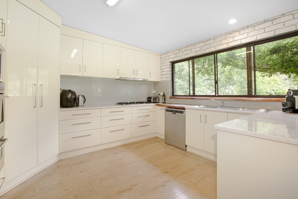 The modern kitchen includes stone benchtops, gas stove, large 2 door pantry with ample cupboard space and dishwasher. The kitchen is functional which allows for interaction between the whole family.