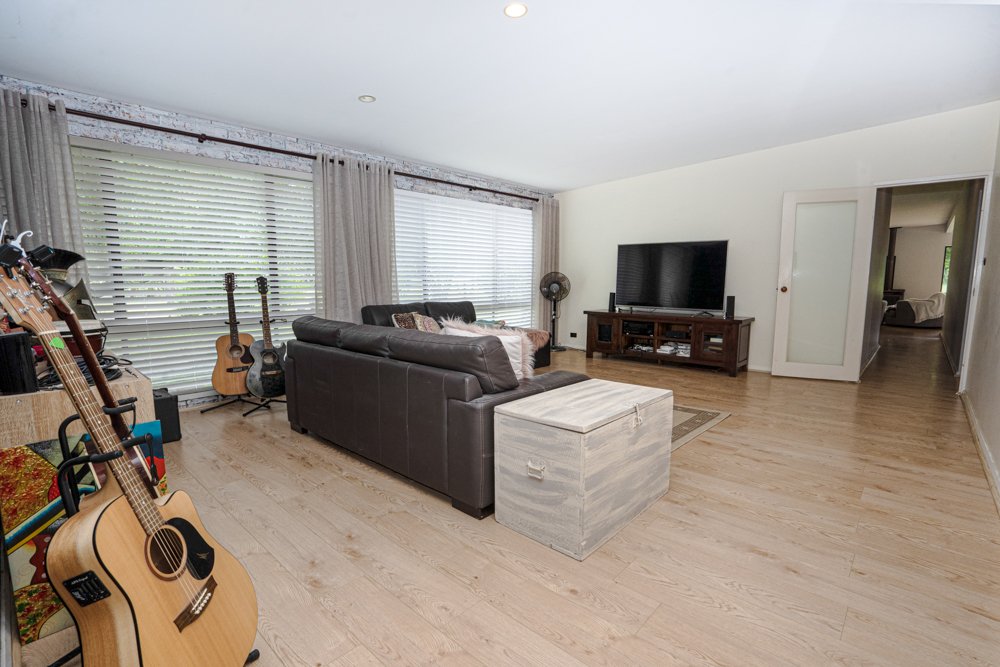 Upon entering the home, you are greeted with a spacious sun filled open plan living and dining room leading into the modern kitchen and additional family room that includes a wood fireplace for that warm and cosy country feeling.