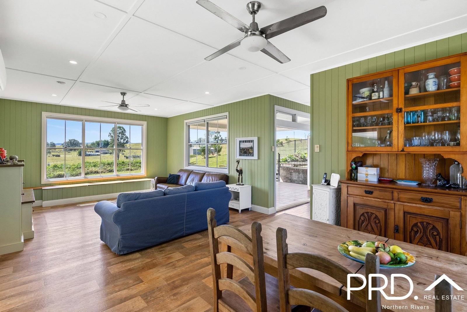 This generously-sized country home offers a prime position under 3km to town. The original farmhouse has 4 bedrooms with 15-foot high ceilings (master with walk-in wardrobe), a cosy central living room with fireplace, a separate study and a large utility room. A wraparound verandah out the front offers peaceful views over the surrounding hills and paddocks. The vibrant family bathroom has a double vanity, bathtub, shower and separate toilet.